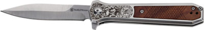 S&W KNIFE UNWAVERED SPRING AST – 3.5″ SS/ROSEWOOD ENGRV DAGGER