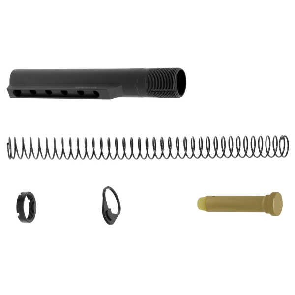 Aim Sports 6-Position M4 stock is a complete stock assembly with mil-spec carbine buffer tube, spring, buffer, USGI compatible stock with QD swivel cup, ambidextrous sling mount end plate.