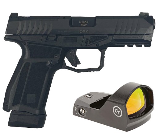 AREX DELTA M OR 9MM 1X15RD 1X17RD AMBI MAG AND SLIDE RELEASE 5X OPTICS PLATES BLACK WITH CRIMSON TRACE RED DOT