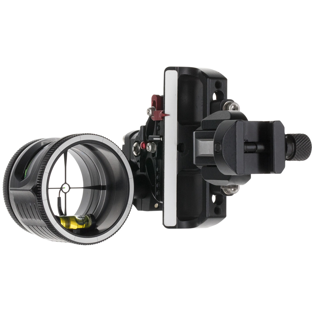 Slider sight allows to set each Accu-Click at a specific 20, 30, 40 yards so the slider stops where you want it. A 45 degree rear facing sight tape allows easy recognition of the sight pointer. Adjustable red elevation tension lever provides own personal choice of how easily the sight slides along the elevation bar. Features all axis leveling capabilities from the fire adjustments NO shims needed to the second and third axis leveling on the head of the scope adjustment. Superior windage dovetail guide system. The quick adjust Rheostate cover dims the fiber optic pins from star bursting in direct sunlight. Comes with AV-31 scope with crosshair works well in hunting blinds and has a torque indicator on front of scope to help identify if your bow is canted to one side or the other. Fire pin equipped tough CNC machined pins. This sight has CCT technology aiming ring at same depth as sight pins, designed for greater accuracy when viewed slightly off center. The Picatinny in-line sight mounts your sight to the front of your bow for better balance and create a super strong and durable connection so functional is the ability to adjust the sight in or out to one of three positions to match the peep sight to the scope housing or up or down to one of three positions on the bow riser for enhanced elevation adjustments. Adjustments with each picatinny connection can be done with one screw and snugged down slightly with a hex key wrench.