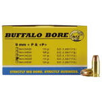 All Buffalo Bore 9mm +P and +P+ ammunition is loaded with flash suppressed powder so you won’t be blinded if you have to drop the hammer in low light. Over 90% of all human shootings are in low light, so flashed suppressed powder can be a life saver as no one wants to be blind after they fire one shot in a critical situation.