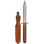 This beauty is decked out and ready to be put on display. A mirror polished stainless steel blade and lacquered walnut* handle scales make this knife a real head turner. But don’t be fooled – this pretty lady is ready to dive into work as well! Sold with an American made leather sheath. *Walnut is a natural material and there will be variation in grain and color of the handle scales used to make the EK13 Presentation Knives.