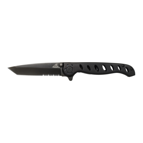 A knife that fits in between the EVO and the EVO Jr., the EVO Mid sports a tactically styled Tanto blade and low-rise pocket clip. Its partially serrated blade is made with surgical grade stainless steel and is treated for strength and corrosion resistance. It has a liner lock mechanism for one-handed closing and a finger flip for easy opening. The Mid is a tactically designed, lightweight, everyday carrier.