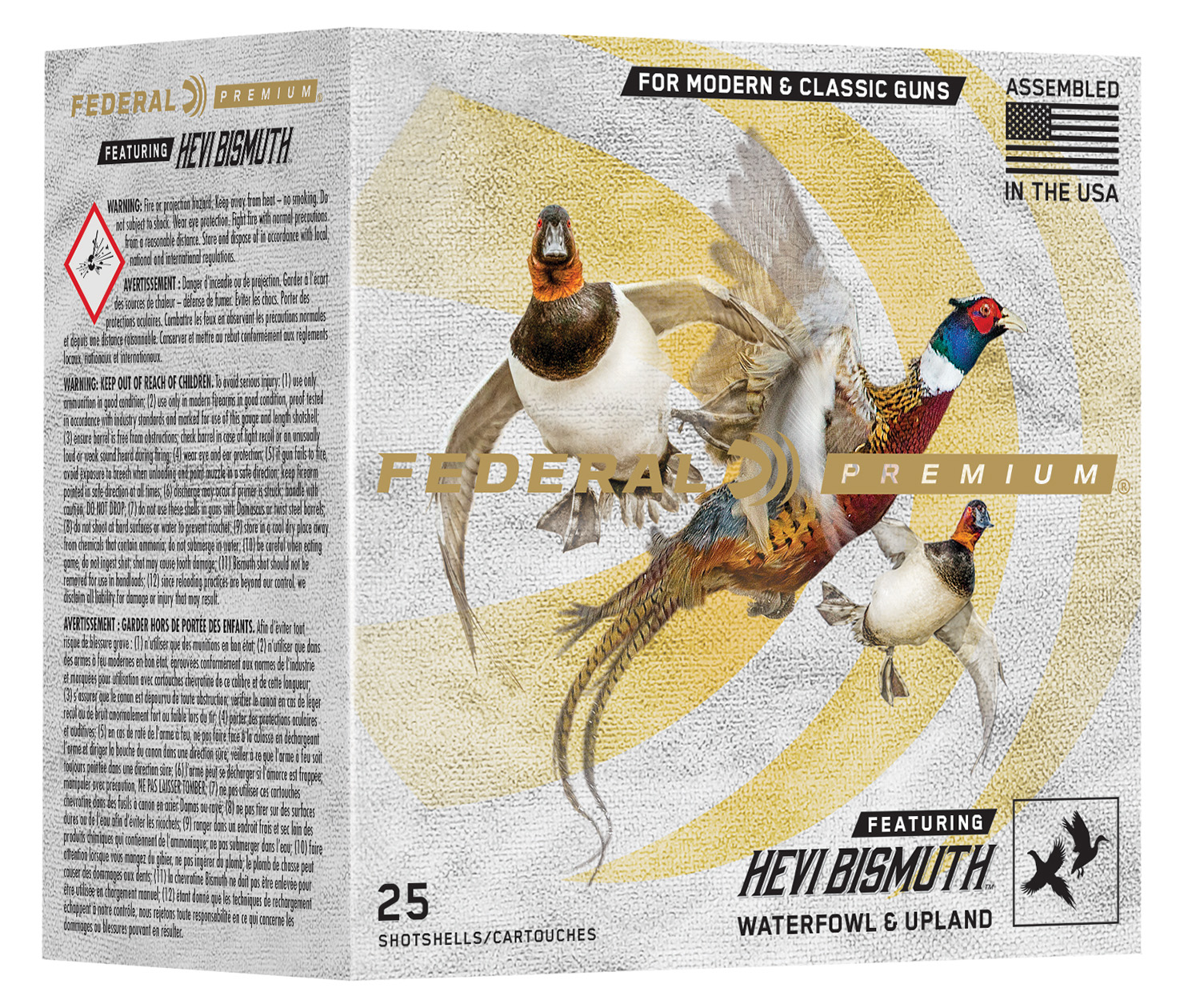 The Federal Premium loads start with the finest primers, which are subjected to more frequent inspections for dimensional tolerances and charge weight to ensure they deliver consistent ignition for every shot. Next is the propellants, which are specially formulated to meet Federal’s stringent specifications. These clean-burning powders are of the highest grades in the industry. They’re consistent and reliable. The HEVI-Bismuth hits both upland birds and waterfowl with the power of 9.6 g/cc density pellets. Sourced from Federal’s partners at HEVI-Shot, HEVI-Bismuth shot is 22 percent denser than steel, delivering more lethal energy downrange. Launched by the FLITECONTROL FLEX wad, bismuth pellets pattern consistently, and their metallic properties make them safe in both modern and classic shotguns.