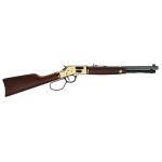 The Henry Big Boy Carbine is a modern carry-over of the ‘Trapper’ classics of the past. It combines all the features of Henry’s legendary Big Boy rifle with the quick handling of a shorter, lighter carbine barrel length which decreases barrel weight by almost a pound. It’s the ideal brush gun for tight spaces, but don’t let its compact size fool you. The shorter barrel gives up nothing in accuracy to the regular Big Boy. And like the classic Henry Big Boy, the attention to detail in the design with great western styling including the large loop lever makes holding this rifle as thrilling as it is to shoot. The 16.5″ octagonal barrel is outfitted with a classic fully adjustable semi-buckhorn rear sight with a reversible white diamond insert and a brass beaded front-sight. The tubular magazine tops off at 7 rounds. Both the straight-grip stock and forearm are crafted of select American walnut accented with a brass barrel band and Henry’s recognizable brass receiver. All have that crisp, smooth action that sets an authentic American-made Henry apart from other lever action rifles on the range and in the woods today.