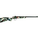 Manually cocking single-shot bolt action. 16.125″ Blued Steel barrel. Rebounding firing pin automatically blocked to prevent accidental discharge. Adjustable Rear Peep sight, Fixed front sight. Drilled and Tapped to accept Crickett scope mounts