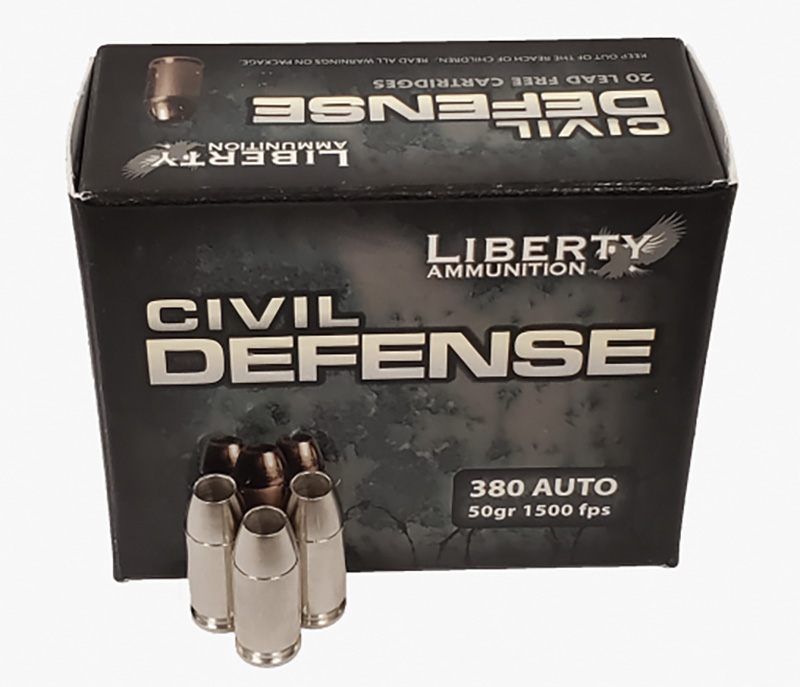 Liberty Ammunition, MFG# LA-CD-380-023, UPC: 696859105654, UOM: BOX, Civil Defense, 380 ACP, 50 grain, Copper Monolithic Fragmenting Hollow Point, 20/box, LIBT, LIBTAM40, LIBTAMALL, AM40, AMALL, Case: 10
