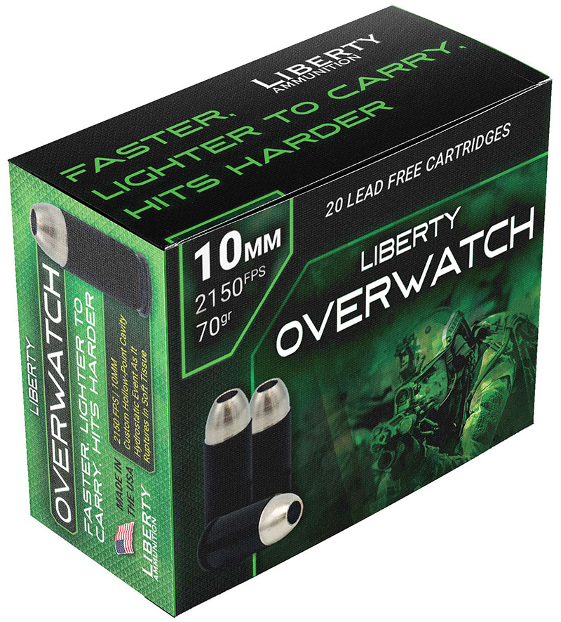 Liberty Ammunition, MFG# LA-OW10MM-70-2150, UPC: 691835873916, UOM: Box, Overwatch, 10mm Auto, 70 Grain, Rupturing Copper Projectile Hollow Point, 20/Box, LIBT, LIBTAM40, LIBTAMALL, AM40, AMALL, Case:10