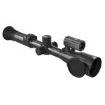The Pantera 480 LRF is a compact and lightweight multifunctional thermal imaging device with a 50mm lens and 100mm of eye relief that also integrates a Laser Range Finder effective up to 1000m. Easily mounts to your rifle with the included 30mm rings. It features a 3x base magnification and 2-8x digital zoom magnification that enlarges the target. With a 5 x 5 degree field of view, you have a great sense of where the target is in relation to the environment. Resolution of the IPS display is 800×800 (true round display) and backs up the 480×360 thermal sensor allowing the Pantera to sense targets at up to 3400m. The Pantera offers six thermal image display options, four reticle colors, six reticle styles and three independent scene modes to adapt to varying environmental conditions and user preferences. The Pantera features such as a Ballistics Calculator, PIP mode, Hot Target Tracing, Internal Digital Gyroscope, Recoil-Activated Recording, Loop Recording, Electronic Compass, Mechanical Shutter, Integrated Microphone, firmware updates and Wi-Fi connectivity to your mobile device via the free PARDVision app. Integrates 1536×1536 digital image capture (.JPG) and 768×768 video (.mp4) recording for your shot record that can be saved to a 128GB removable micro SD card.