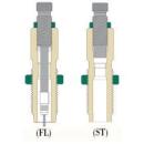 Full length die sets for bottleneck cases contain two dies. The full length (FL) resizing die contains a decapping rod assembly with a neck expander (size button). The seating die (ST) includes bullet guide built-in crimp ring and the proper seating plug.