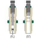 Full length die sets for bottleneck cases contain two dies. The full length (FL) resizing die contains a decapping rod assembly with a neck expander (size button). The seating die (ST) includes bullet guide built-in crimp ring and the proper seating plug.
