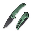 Serene Flipper/Thumb Stud Folding Knife 3.48"" Black D2 Drop Point Plain Edge Blade, Green Aluminum Handle