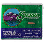 Sierra has enhanced a segment of the MatchKing line by adding the acetal resin tip, thus crowning the Tipped MatchKing bullet line. The major advantage of adding a tip to the bullet is the reduction of drag, producing a more favorable ballistic coefficient. Specifications: .22 Cal .224 69 gr Tipped MatchKing 500 Per Box