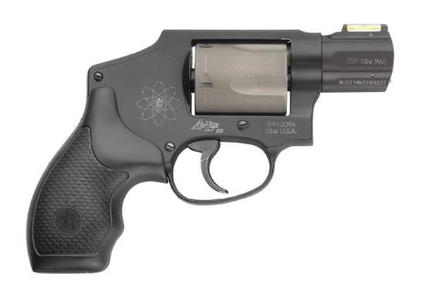 Brand: Smith & Wesson Model: Model 340PD – AirLite Sc Centennial Type: Revolver: Double Action Only Caliber: 357 Finish: Matte Black Action: Double Action Only Stock: Synthetic Sight: Front: HI-Viz Fiber Optic Green Rear: Fixed Barrel Length: 1.87 Overall Length: 6.3125 Weight: 11.4 oz Capacity: 5 Safety: Internal Lock Features: Round Butt, Internal Hammer, Smooth Target Trigger; Scandium Alloy Construction