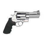 Brand: Smith & Wesson Model: Model 500 Type: Revolver: Double Action Caliber: 500 SW Magnum Finish: Satin Stainless Steel Action: Double Action Stock: Hogue Sorbothane Recoil Absorbing Grip Sight: Front: Red Ramp Rear: Micrometer Click Blk Blade Barrel Length: 4 (3 + 1 Compensator) Overall Length: 10.25 Weight: 56 oz Capacity: 5 Safety: Internal Lock Receiver: Satin Stainless Steel Features: Removeable Inerchangeable Compensator:; One for Lead Ammo and One for Jacketed Ammo