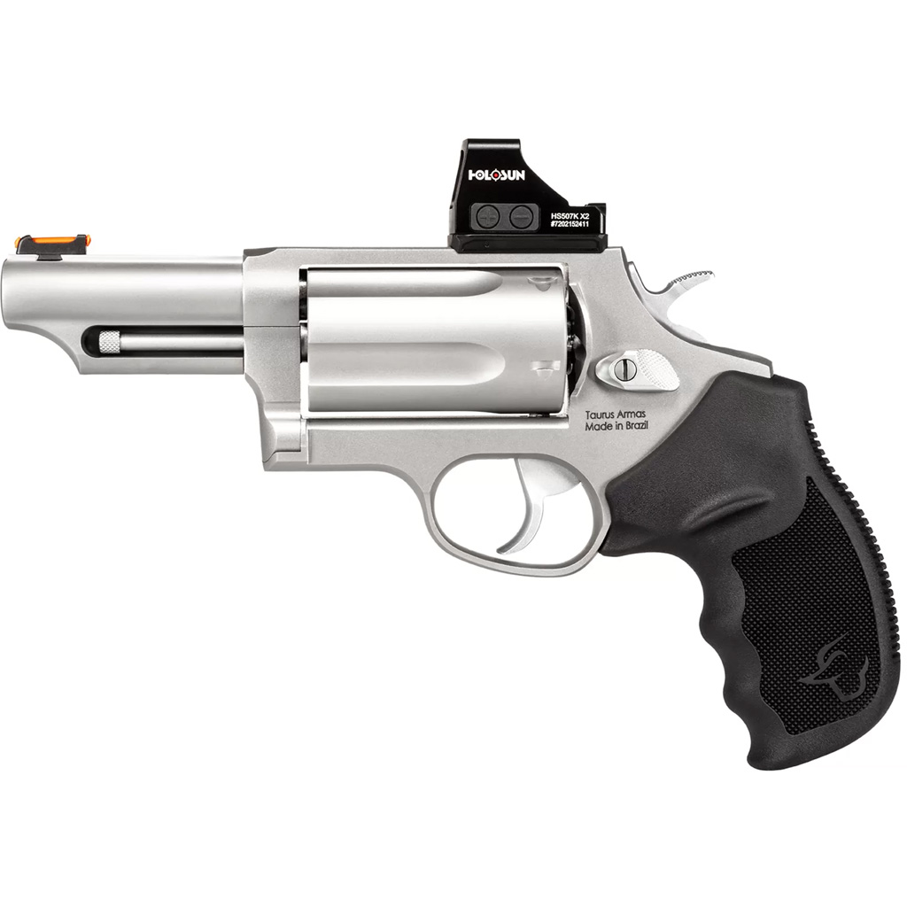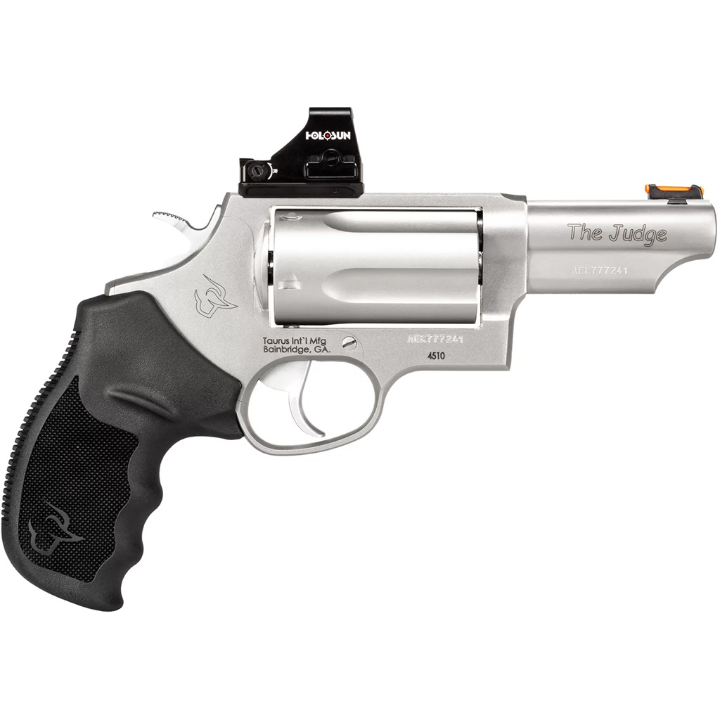 More than a decade since it was first introduced, the legendary Taurus Judge still rules. Today, it’s available in more than a dozen models. Capable of chambering both 45 Colt and 410 shotshell, it’s the original five-shot game changer. The Magnum is capable of handling 3″ .410 shot shells. T.O.R.O. models are Optics Ready