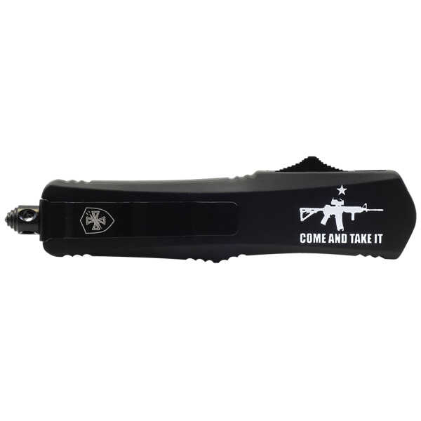 Templar Knife SAR15531 Gen II Come And Take It Small 2.69″ OTF Tanto Part Serrated Black Oxide 440C SS Blade, 4.31″ Black w/ “Come And Take It” AR-15 Gun Aluminum Handle, Glass Breaker