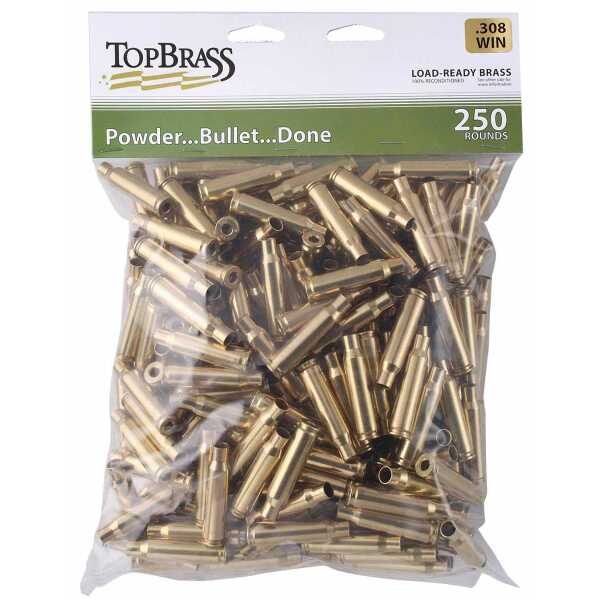 Top Brass Unprimed Remanufactured Rifle Brass .308 Win Bagged Header Card Grade A+ 250/ct