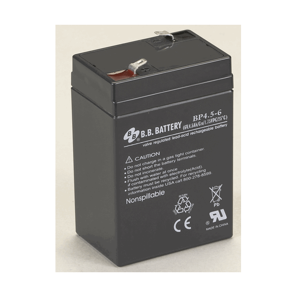 This is a no-maintenance 6 volt 5 Ah sealed lead acid rechargeable battery.