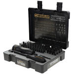 Taking gunsmithing to the next level with the Wheeler 100 Piece Professional F.A.T. Wrench Screwdriver Set. The combination of Wheeler’s iconic F.A.T. Wrench with 98 torque range of 10-65 in-lbs, the F.A.T. Wrench is ideal for a variety of fastening jobs. Both the F.A.T. and the 1/4″ driver handle feature a texturized rubber grip to create a comfortable and secure hold.