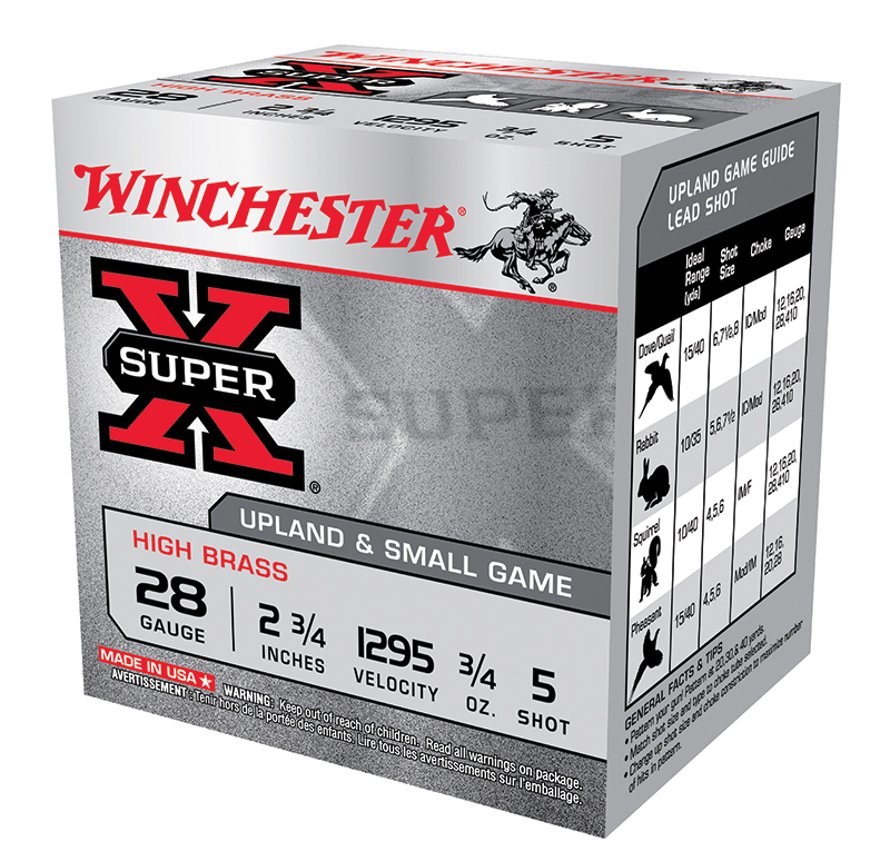 Winchester Ammunition, MFG# X285, UPC: 020892023376, UOM: BOX, Super-X High Brass, 28 gauge, 2.75″ 3/4 oz, #5 shot, 25/box, WINC, WINCAM10, WINCAMALL, AM10, AMALL, Case: 10