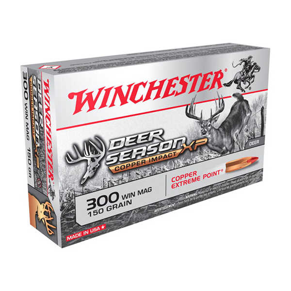 Winchester’s Copper Impact features a large-impact-diameter Copper Extreme Point which expands immediately upon contact to deliver massive knockdown power. Its solid copper bullet design offers improved weight retention over standard jacketed lead-core bullets.