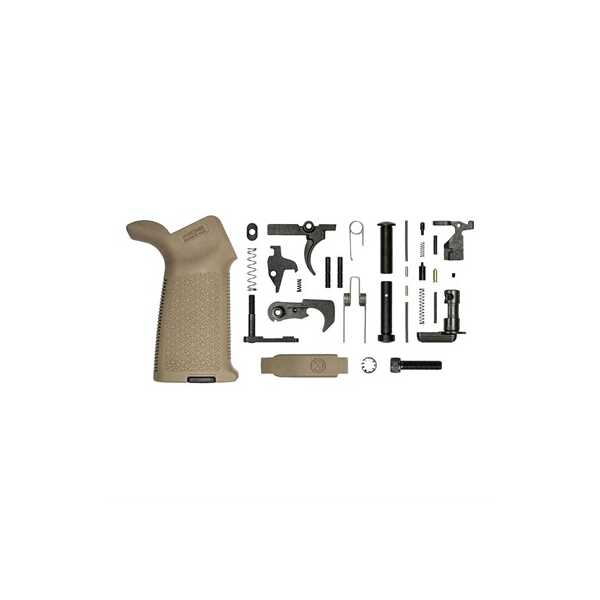 The color coated parts included are: Ejection Port Cover Door, Forward Assist, Castle Nut, Receiver End Plate, Bolt Catch, Mag Lever, Mag Button, Pivot Pin, Takedown Pin, Trigger Guard, Buffer Retainer. Also includes the pins and spring kit for the Lower Controls. (Does not include any trigger components).